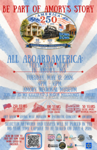 The community is invited to take part in a historic celebration on Tuesday, May 12, 2026, from 4:00 to 6:00 p.m. at the Amory Regional Museum as Amory kicks off three major milestones: the 250th anniversary of the United States, the 100th anniversary of the Frisco 1529 steam locomotive, and the 50th anniversary of the Amory Regional Museum.