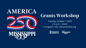 Join the MHC program staff on Tuesday, October 7, from 2-3 p.m. for a Zoom webinar exploring America250 Mississippi grant opportunities. The webinar is free and open to all. Registration required.After the webinar, participants may request a one-on-one consultation regarding programs or events they are planning.