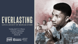 Everlasting: Life and Legacy of Medgar Evers will be screening at the University of Mississippi thanks to a partnership between Mississippi Public Broadcasting, the Medgar and Myrlie Evers Institute, and the Mississippi Humanities Council. This original documentary from MPB explores the profound life, courage, and enduring influence of civil rights leader Medgar Wiley Evers.
