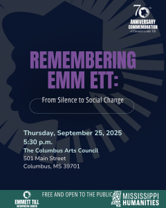 “Remembering Emmett: From Silence to Social Change” is an exhibit by the Emmett Till Interpretive Center in support of the Community Read. This event is also supported by the Mississippi Humanities Council.