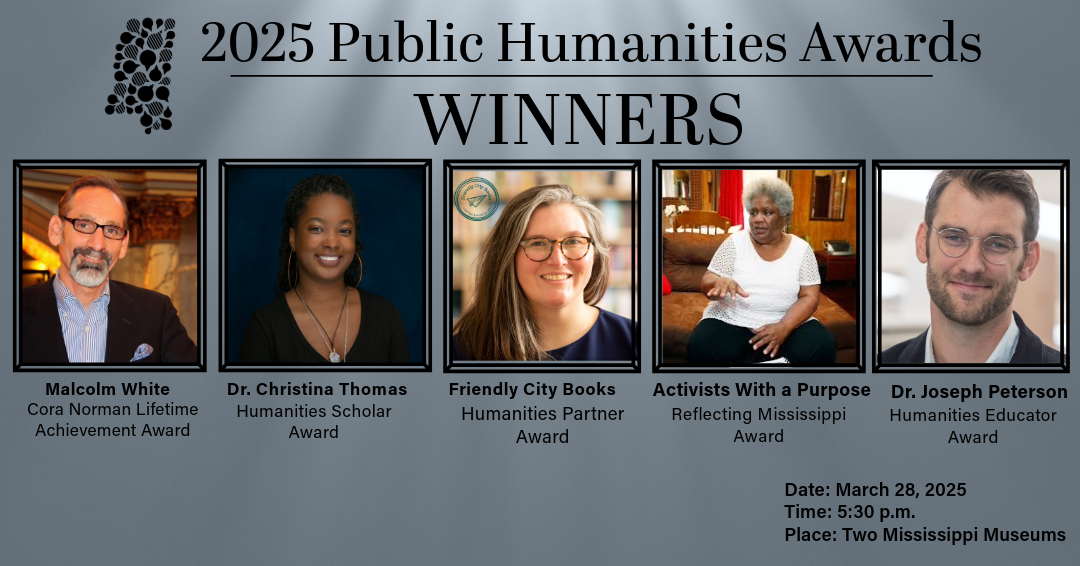 The Mississippi Humanities Council recognizes this year’s incredible honorees who have made outstanding contributions to promoting and preserving the humanities in our state. Join us to celebrate these achievements at the 2025 Public Humanities Awards Ceremony. Each year, the Mississippi Humanities Council honor scholars, educators, and organizations who have made significant contributions to the public […]